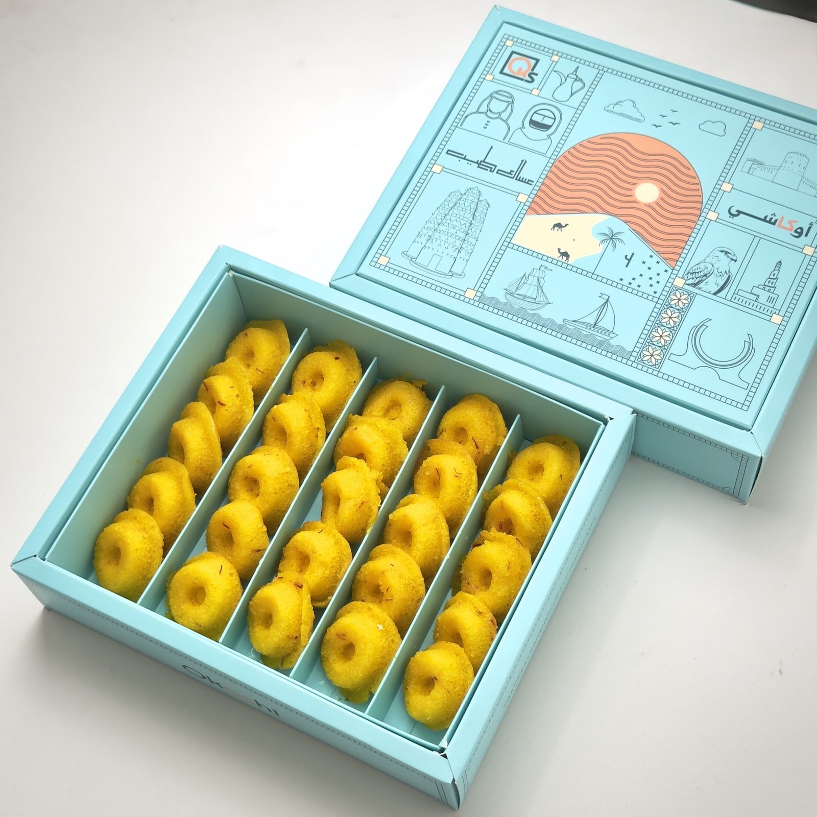 Our mini saffron cakes come beautifully presented in a stunning turquoise gift box, designed to elevate the gifting experience. The box’s elegant design ensures it stands out, making it perfect for celebrations, special moments, or simply as a gift to someone who deserves a touch of luxury. Whether you’re hosting an event or attending one, this box of mini saffron cakes adds sophistication and thoughtfulness to the occasion.